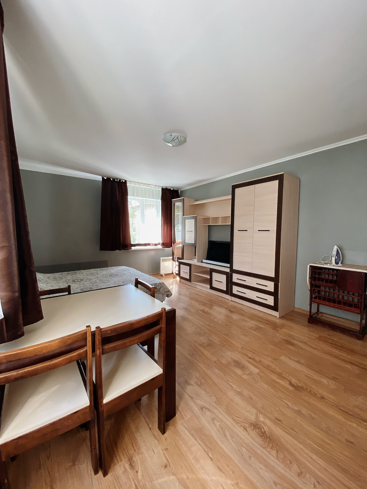 Sembra quasi un nuovo appartamento con tutti i servizi. Pulito, accogliente e confortevole per ospitare 2 persone. L'appartamento ha un grande letto matrimoniale che all'occorrenza può essere steso in 2 letti singoli. La parte centrale della città, la passeggiata. La casa al piano terra ha una palestra. Appena fuori casa c'è un minimarket aperto 24 ore su 24. L'appartamento dispone di WiFi, TV via cavo, riscaldamento elettrico, caldaia, biancheria da letto pulita, asciugamani, piano cottura elettrico, forno a microonde, utensili da cucina, ferro da stiro, tv.