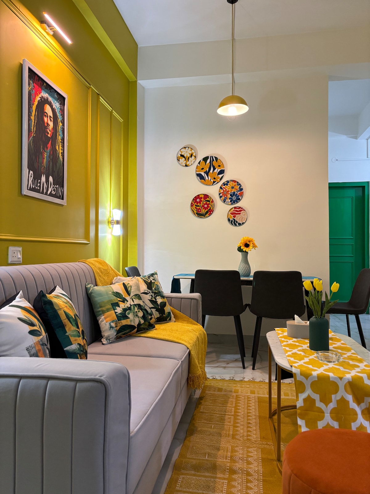 Questo 1bhk è composto da una camera da letto con bagno annesso, una sala da pranzo e una cucina completamente funzionale. La camera è dotata di aria condizionata e il bagno è dotato di geyser. Si trova al piano terra con un ingresso separato. È disponibile un parcheggio per un'auto/bici. Wifi disponibile. Spazio queer e adatto alle coppie per gli ospiti di età pari o superiore a 18 anni.