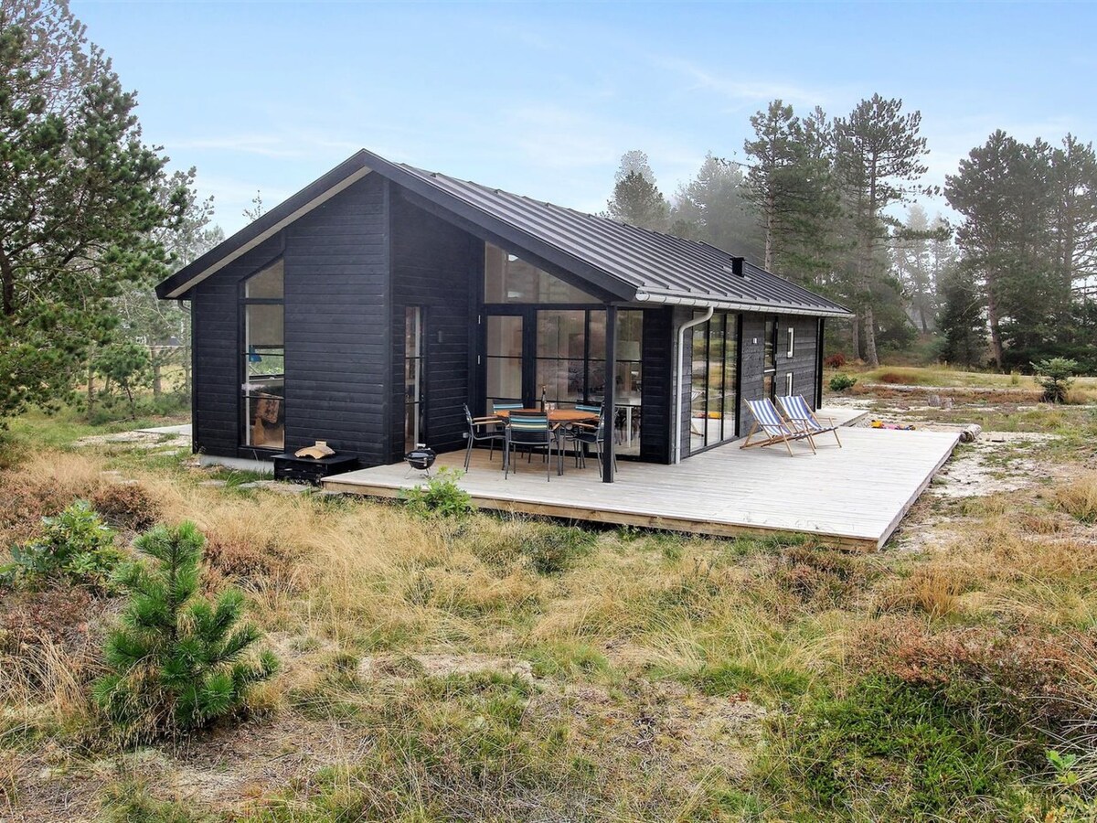 La casa è di 102 m2 e si trova su un terreno di 2500m2 di erica e pini in una zona assolutamente tranquilla. Una grande terrazza coperta verso sud vi dà la possibilità di trascorrere molte belle ore. WI-FI gratuito (200 M/B) Capanna sauna per 6 persone. Benessere :-) La casa è molto apprezzata. Riceviamo ottime recensioni. "Abbiamo apprezzato molto il nostro soggiorno da Margit: la casa è super attrezzata e offre sicuramente il fattore benessere". L