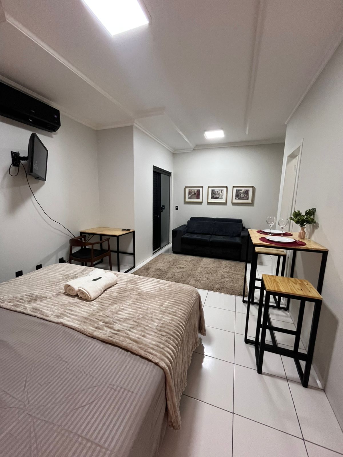 Praticità, comfort e privacy. Ambiente moderno e completo per il tuo riposo. Ideale per una coppia o una persona. Arredato e attrezzato: Internet, aria condizionata, frigorifero, piano cottura, stoviglie. Sicurezza: Parcheggio, cancello elettronico, recinzione elettrica, telecamere di sorveglianza. A 5 minuti dal centro di Sorriso. Vicino a supermercati, pizzeria, farmacie, gelateria, stazione di servizio, tempo libero nel Lago Park.