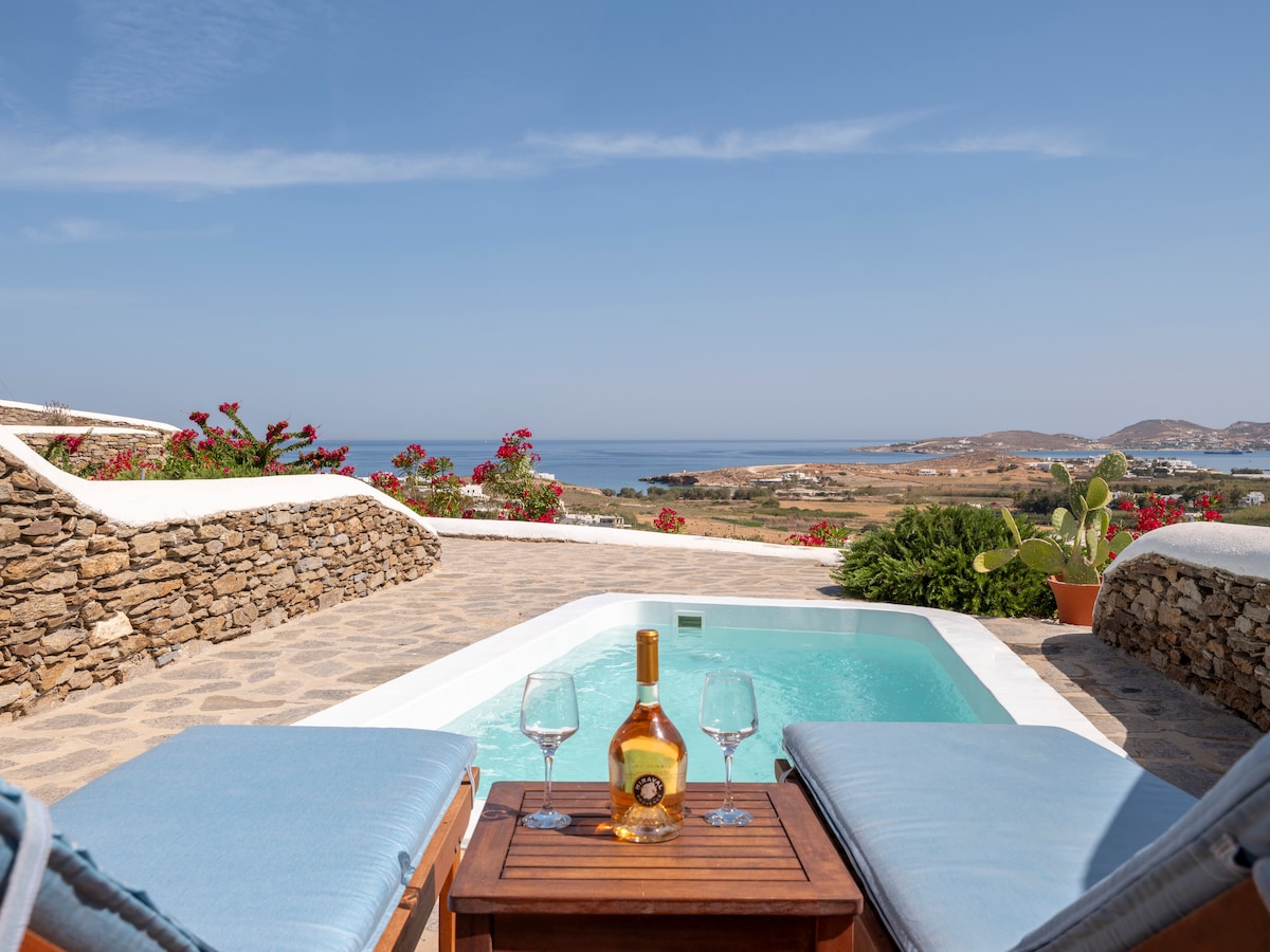 La villa Sueno Sunset per 2 persone si trova in una bella zona con splendide viste sul mare; fa parte di un complesso composto da altri 5 appartamenti e dista 2,3 chilometri dal porto di Paroikia. Il centro storico, i negozi e la vita notturna sono a 1200 metri. È di 33 metri quadrati e dispone di una cucina completamente attrezzata, 1 camera da letto, un soggiorno, 1 bagno e veranda con vasca idromassaggio non riscaldata. La consegni pulita con lenzuola e asciugamani e non è previsto un servizio durante il soggiorno.