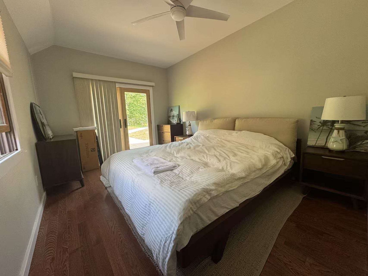 Cottage per gli ospiti degli anni '30 con 1 camera da letto e soggiorno. Vicino a molti sentieri escursionistici. Condizionatore d'aria per finestre nuovissimo, ventilatori a soffitto nella camera da letto con soggiorno. Camera da letto separata con finestra e nuovo materasso a grandezza naturale. Fornelli a gas di dimensioni standard, forno a microonde, frigorifero, macchina per il caffè Keurig, tostapane e grande bancone piastrellato e lavandino. Bagno completo fuori camera da letto con grande vasca con piedi a zampa d'elefante e combinazione di doccia e lavandino e servizi igienici nuovi di zecca. Wifi , Smart TV a schermo piatto. Caminetto in ghisa vintage con inserto elettrico.