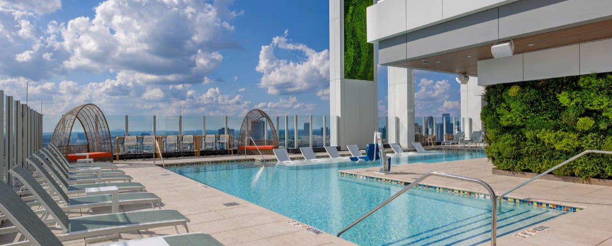 Scopri Atlanta con stile in questo moderno monolocale a pochi passi dal Mercedes-Benz Stadium, dalla State Farm Arena e dal Centennial Park! Situato nell'esclusiva torre Wyndham Margaritaville, questo spazio chic può ospitare fino a 4 persone con un lussuoso letto king-size e un divano letto queen-size. Goditi un angolo cottura, un bagno elegante e vantaggi in stile resort: piscina panoramica con vista sullo skyline, ristorante in loco, centro fitness e un bar sul tetto perfetto per cocktail al tramonto. Cammina ovunque, rilassati in tutta comodità e rendi indimenticabile il tuo soggiorno ad Atlanta!