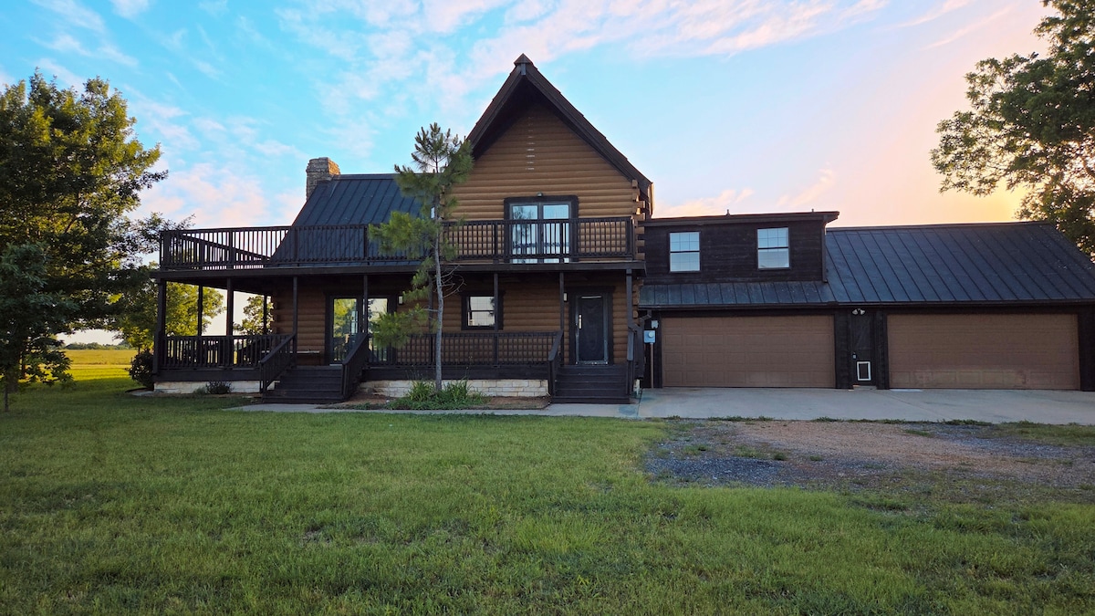 Rifugiati in un accogliente chalet immerso in un ranch privato di 80 ettari a Sherman, in Texas. Circondato da pascoli aperti e panorami mozzafiato, questo rifugio offre serenità a pochi minuti dalla città. Perfetta per famiglie, riunioni o matrimoni, la baita può ospitare comodamente fino a 10 persone. Goditi una cucina completamente attrezzata, WiFi, lavanderia e ampi soggiorni dal fascino rustico. Rilassati sull'ampio portico avvolgente, goditi albe e tramonti indimenticabili, ideale per eventi o vacanze tranquille.