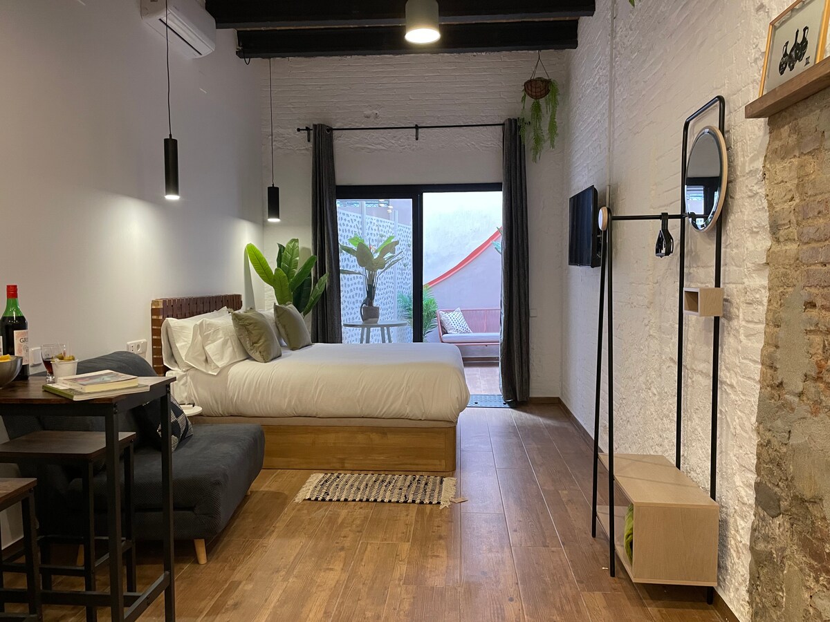 Goditi la semplicità di questo alloggio tranquillo e centrale. Molto ben posizionato a 15 minuti a piedi dal Camp Nou e a 8 minuti da 2 linias della metropolitana. A 15 minuti di metropolitana dalle Ramblas/Sagrada Familia/ Aeropuerto Stile loft con accesso al cortile. 1 letto matrimoniale con angolo cottura completo. Bagno completo. Terrazza condivisa sul tetto con solarium e zona relax. Sabanas e biancheria inclusi. Tassa di soggiorno inclusa. Ti piacerà!