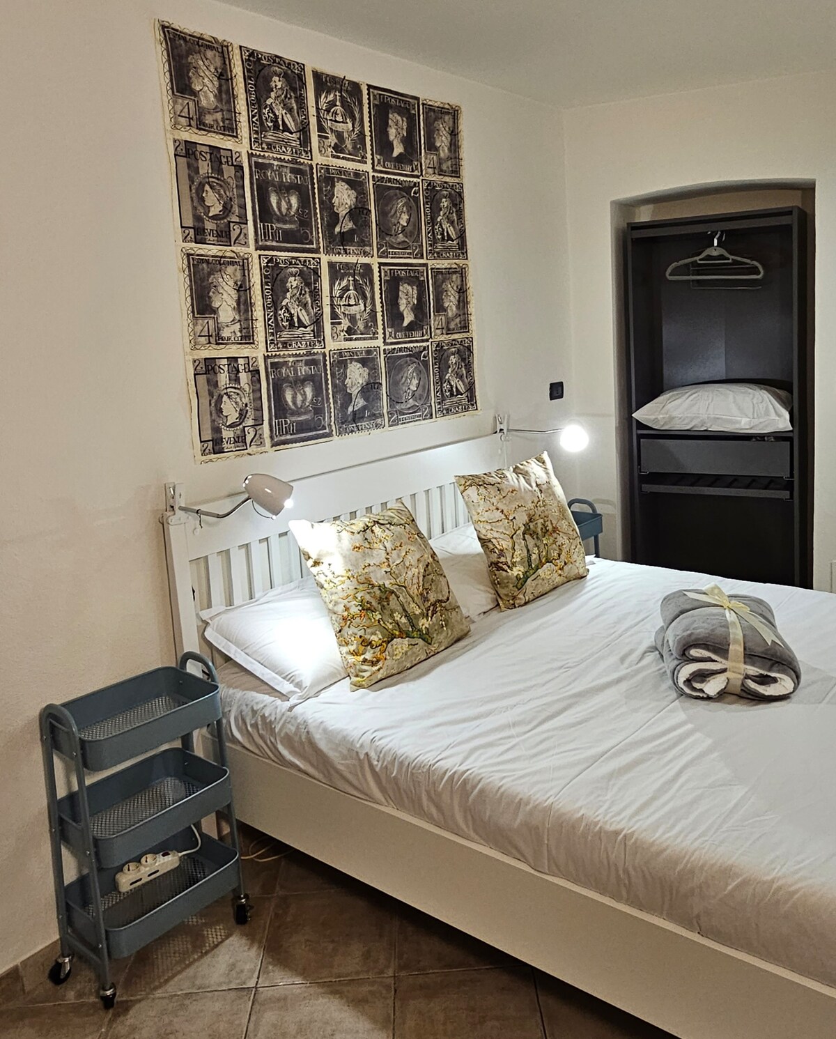 Caratteristico alloggio nel centro storico di Cuneo in una curiosa villetta a due piani di vecchia fattura, recentemente ristrutturata. Ambiente caldo e rustico, con capriate a vista e la piacevole illuminazione della fiamma della stufa. Bagno privato con vasca e doccia, angolo cottura completo di lavastoviglie e forno a microonde; un letto matrimoniale, due letti a castello ed un favoloso soppalco che diventerà il rifugio per i più piccoli! CIN IT004078C2CQCCNQW2