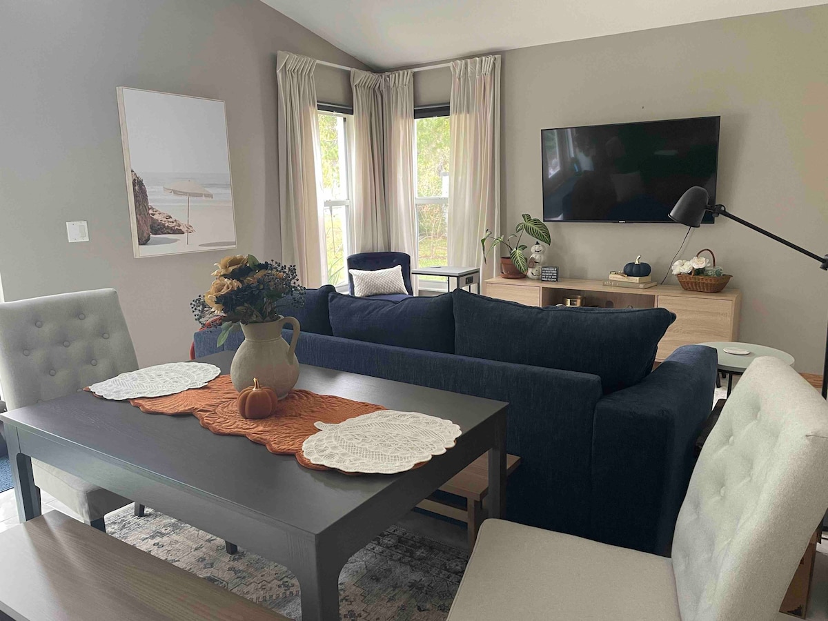 Welcome to your cozy retreat. The suite is attached to the main home with its own private entrance, offering a peaceful, separate space with no shared interior areas. For transparency, it does share walls and secured connecting doors with the main house. As with most attached spaces, you may occasionally hear soft, everyday household sounds. Bright, clean and well appointed. Spacious lakeside deck & canoe for guests' enjoyment.