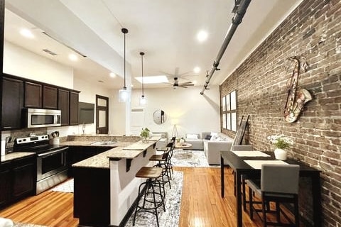 Questa spaziosa unità con 2 camere da letto e 2 bagni si trova nel cuore del centro di Hammond, in Louisiana. Questo edificio storico ha 112 anni ed è stato completamente ristrutturato. Ha oltre 1250 piedi quadrati riscaldati/raffreddati con bagni privati separati in ogni camera. Dispone inoltre di una postazione caffè separata, grandi piani di lavoro in granito con sgabelli e TV a schermo piatto da 70 pollici nella zona giorno. L'unità si trova a pochi passi da oltre 40 ristoranti, parchi, bar e altre attrazioni. Questa è la posizione ideale per soggiornare nel centro di Hammond, in Louisiana