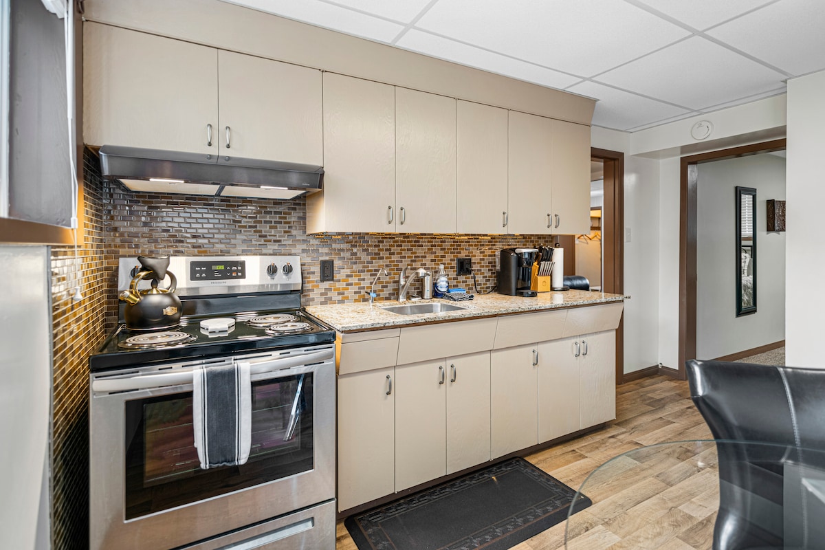 Suite degli ospiti con ingresso privato | 2 ampie camere da letto | Cucina completa | Lavanderia | 4 posti letto Rilassati, rinfrescati, rigenerati. Questa suite nel seminterrato, ben illuminata e spaziosa, dispone di due camere da letto con letto matrimoniale e letto a due piazze, riscaldamento radiante a pavimento e caminetto. Smart TV con canali via cavo premium e wifi incluso. Cucina completamente attrezzata con forniture. Cabina doccia. Lavatrice/asciugatrice in loco. Questa suite offre tutto il necessario per un soggiorno a breve o lungo termine. Chiedici informazioni sul nostro sconto mensile.