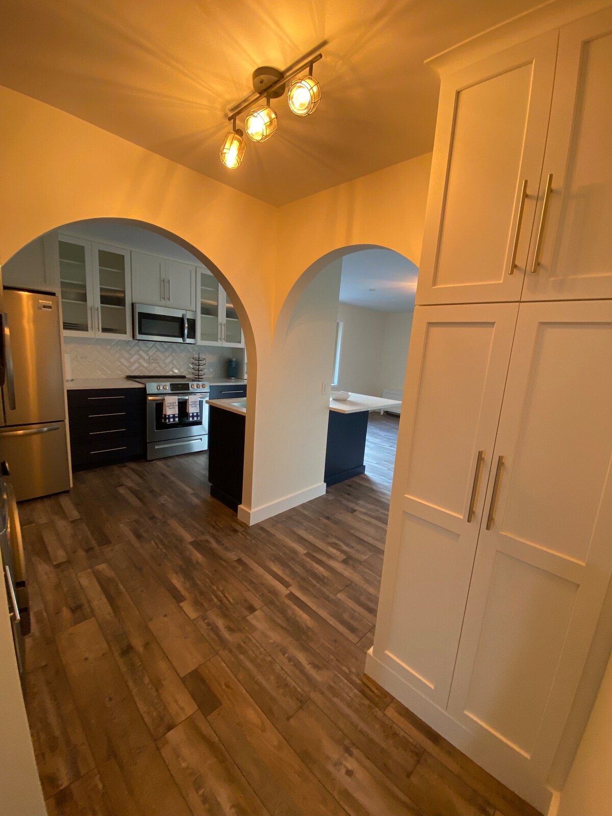 Scopri il lusso e il fascino storico nell'attico negli Historic Hobbs. Costruita nel 1892 e restaurata nel 2023, questa nuova unità angolare con una camera da letto offre una vista panoramica sullo skyline dell'Aurora. Prepara un pasto delizioso nella cucina completamente attrezzata. Cena al tavolo su misura nella baia delle finestre sotto l'iconica cupola a cipolla. Rilassati sull'accogliente divano e goditi un film sul grande schermo. Riposa nel lussuoso letto king-size. Questo rifugio urbano si trova vicino a caffè, negozi, arte e intrattenimento.
