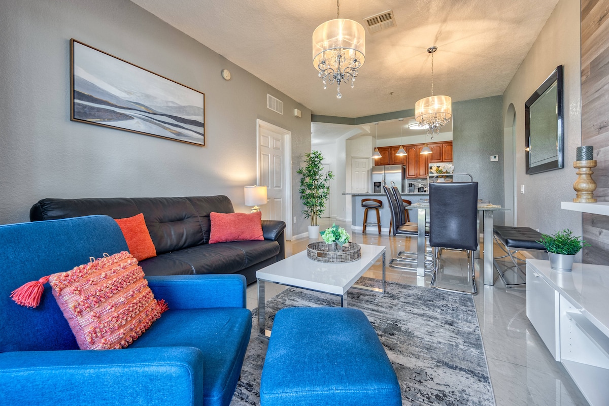 Ti diamo il benvenuto nella nostra elegante oasi a Kissimmee, che unisce perfettamente raffinatezza e un'atmosfera rilassata. Il tuo soggiorno inizia in un appartamento pulito professionalmente per il tuo pieno godimento. Scopri i servizi in stile resort: una piscina scintillante, un centro fitness e amache, che offrono il lusso di un rifugio a 5 stelle. Situato in posizione strategica a pochi passi da parchi a tema, ristoranti e negozi. Prenota subito. Non vediamo l'ora di ospitarti nel nostro piccolo angolo di paradiso!