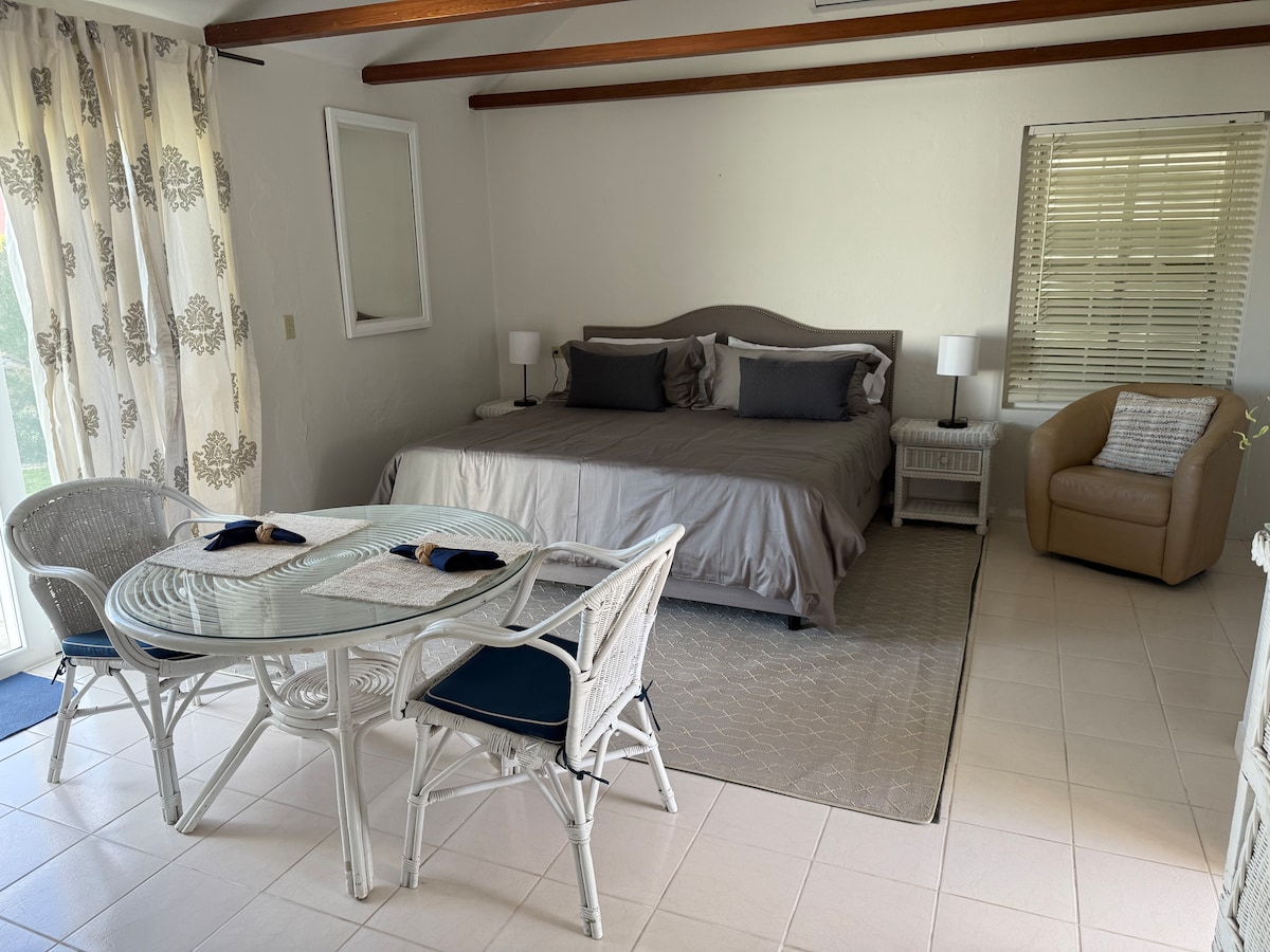 BUONA PRENOTAZIONE! Goditi questa esperienza chic in un monolocale molto accogliente e vivace. La cucina completa è fornita di condimenti, pentole, padelle, caffè, tè, condimenti, ecc. Inoltre, il bagno con doccia ha la maggior parte delle tue esigenze di bagno! Una griglia per barbecue separata è posizionata sul patio superiore. Cena lì o rilassati sui lettini mentre ti crogioli al sole o guardi il tramonto! La tua abbronzatura sarà fantastica! Rilassati nella piscina rinfrescante dopo una lunga giornata trascorsa esplorando l'isola.