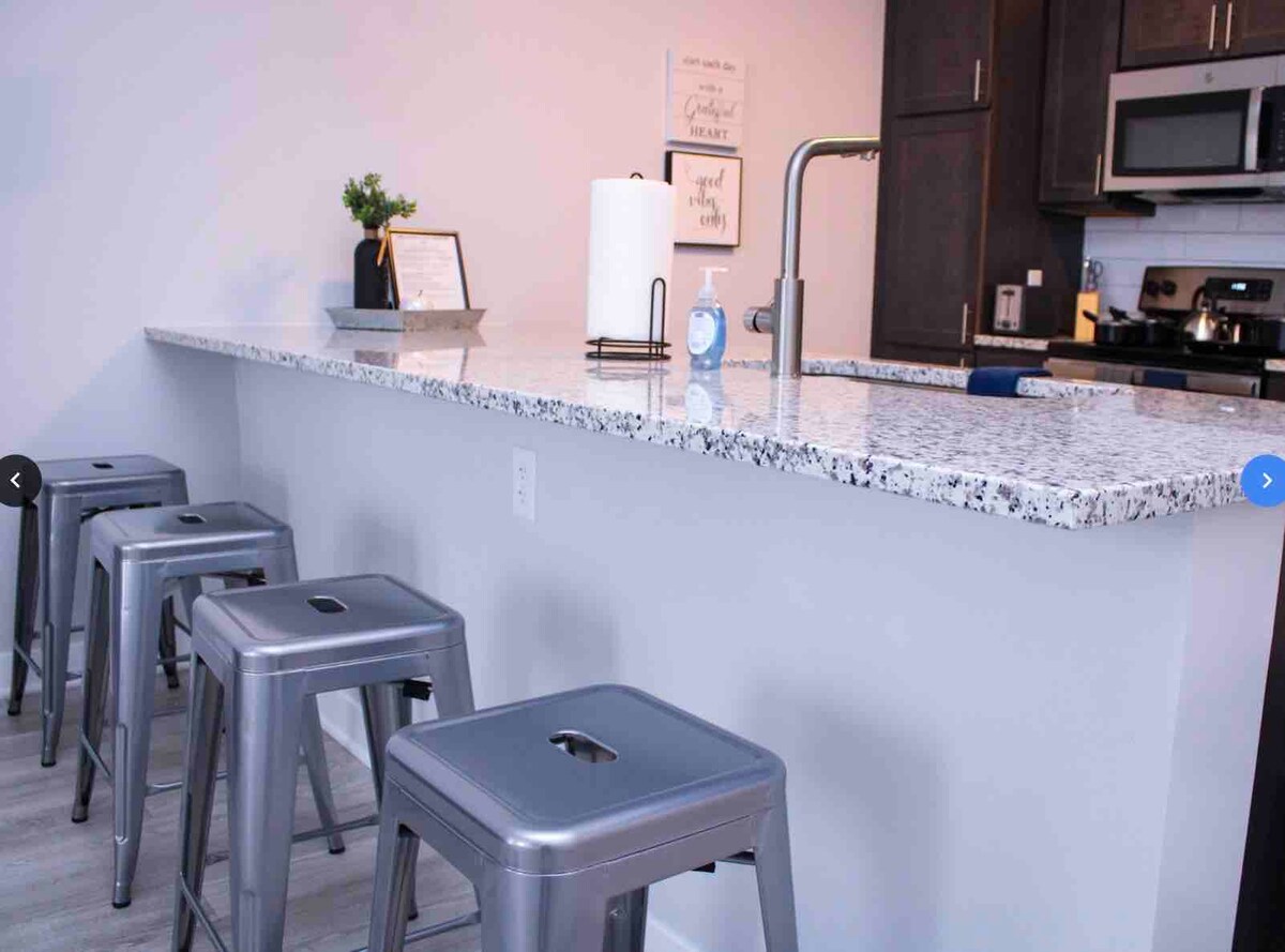 Soggiorna in questo accogliente monolocale situato in posizione centrale nella fantastica comunità di New Town St. Charles. New Town è una nuova comunità urbanistica su larga scala costruita ai margini della periferia. Non dovrai mai lasciare New Town, grazie alla sua vicinanza a ristoranti, bar, un mercato, caffetterie, gelaterie, chioschi di cibo, canali, laghi, parchi e strade alberate. Se lo fai, dista solo pochi chilometri dalla storica St. Charles, The Streets of St. Charles e a 40 km dal centro di St. Louis.
