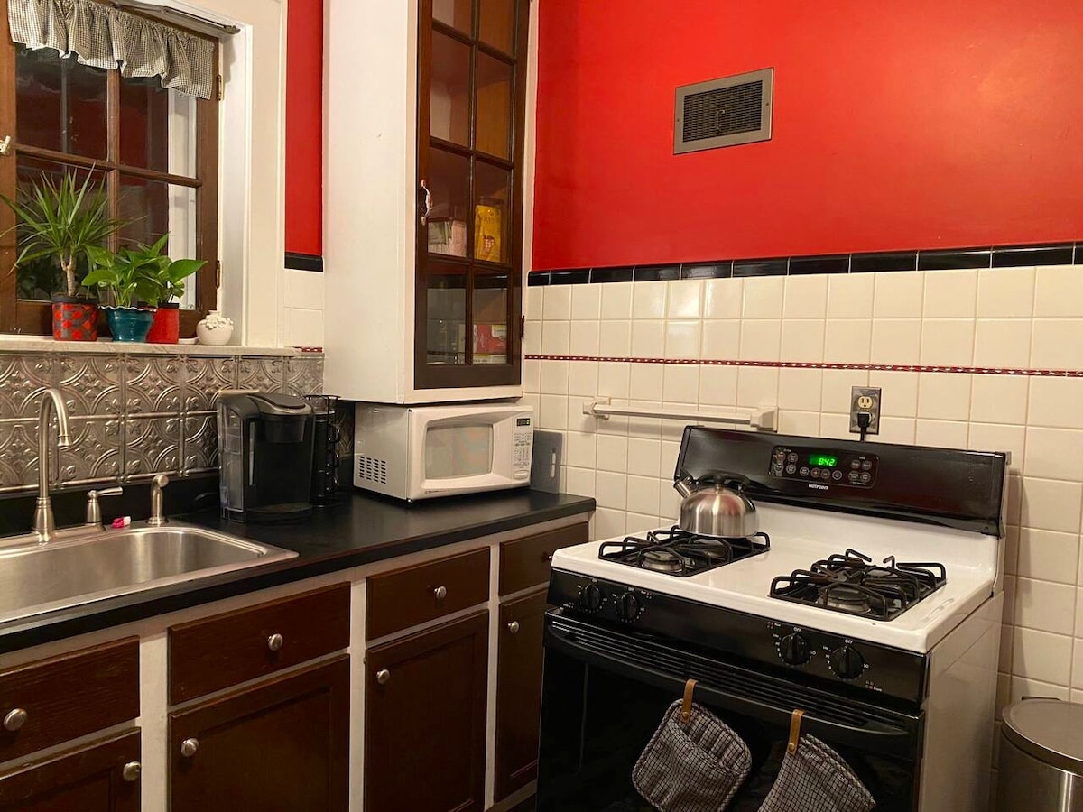 La nostra casa storica è molto luminosa e ha soffitti alti. Le due camere sono arredate con comodi letti matrimoniali. La veranda si trasforma anche in una terza camera da letto. Goditi una tazza di caffè al mattino sull'ampio portico anteriore, oppure gioca in giardino e griglia nel cortile recintato sul retro. La cucina rinnovata è completamente attrezzata con tutto il necessario per farti sentire a casa. A pochi minuti da Forest Park, dagli ospedali BJC e SSM, dalle università, dal centro città e da molti ottimi ristoranti e negozi. Gli amici pelosi sono i benvenuti!