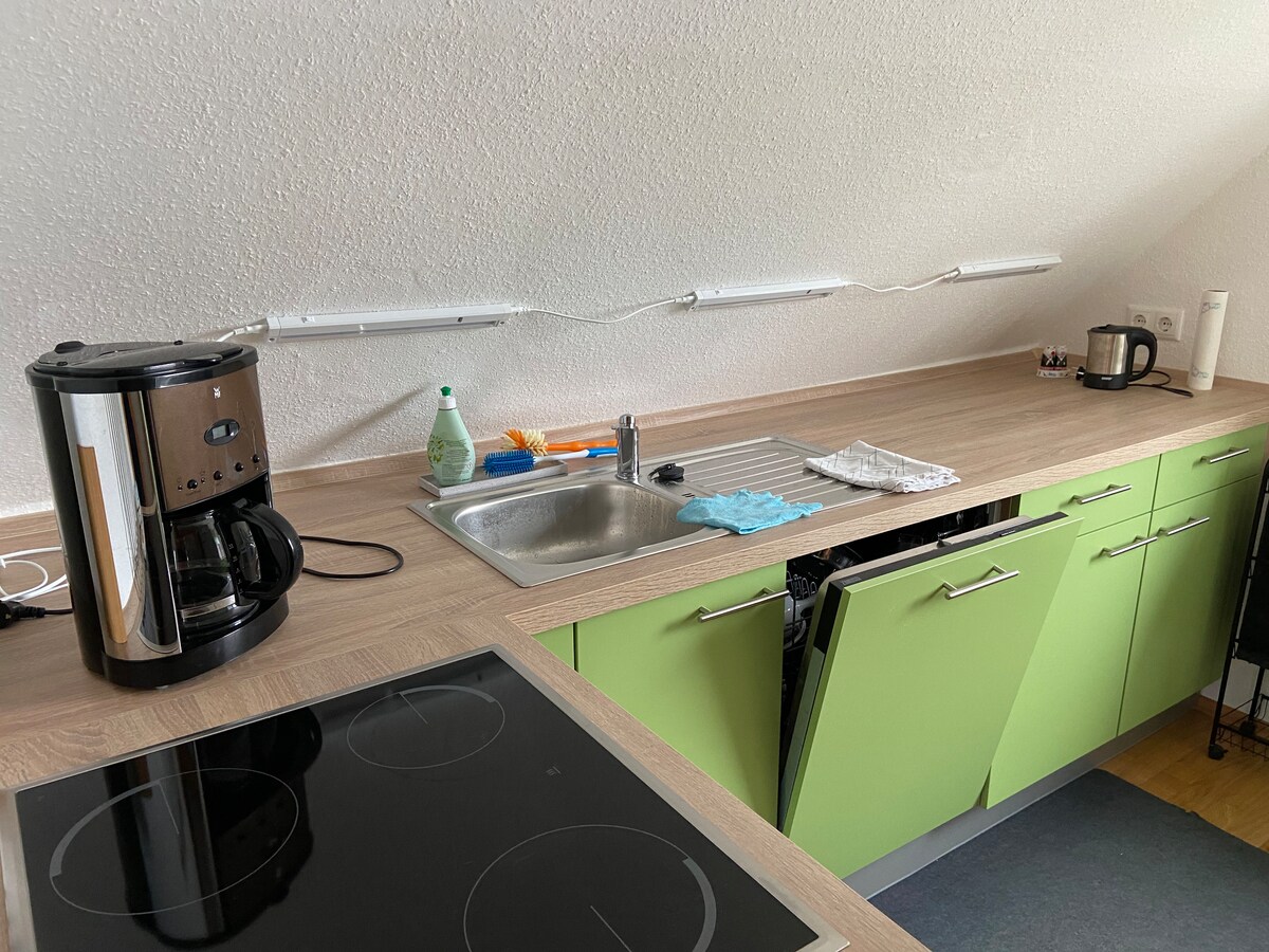 Affittiamo la nostra spaziosa camera per non fumatori nel tetto recentemente ristrutturato della nostra casa, con anticamera, doccia/WC, TV via cavo, angolo cottura (bollitore), macchina per il caffè, forno a microonde e piccolo frigorifero. Forniamo stoviglie, ma non c'è la possibilità di cucinare. Adatta per un massimo di quattro adulti, lettino per bambini disponibile su richiesta. Negozi, piscina Titania e trasporti pubblici nelle vicinanze.
