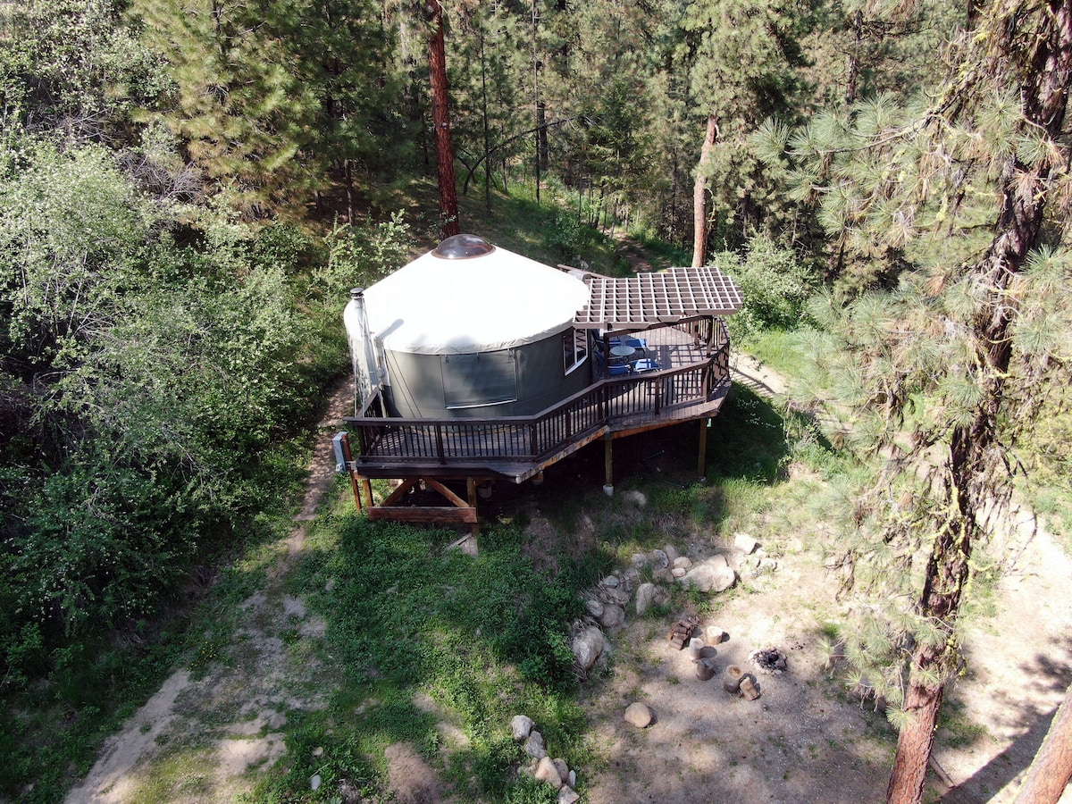 Surrounded by nearly 45 acres of secluded mountain forest a mile above the South Fork of the Payette River between Banks and Crouch, this private yurt offers true off-grid living with modern comforts. Enjoy electricity, Starlink internet, a mini-split for heat and AC, wood stove, propane cook stove and grill. Close to hot springs, hiking and river fun. Not for everyone. No running water, we provide fresh water and a clean porta-potty.