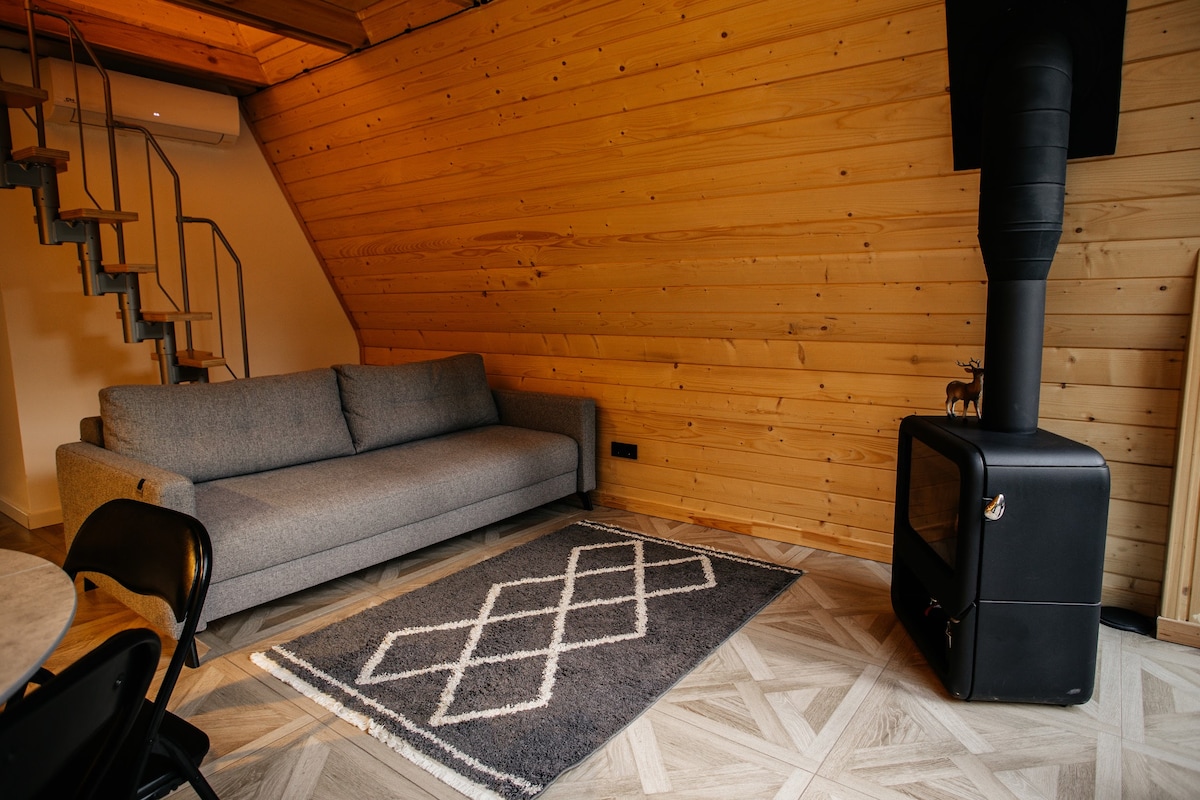 La casa si trova nel villaggio di Rudno Un lodge per una tranquilla vacanza in famiglia. Niente feste rumorose, per chi vuole godersi un po' di natura e silenzio, per chi ama gli interni accoglienti e una vasca calda.