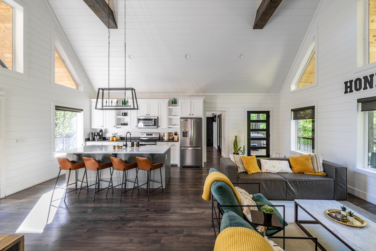 Giorni di check-in e check-out: lunedì, mercoledì e venerdì. Rifugiati in un moderno e unico chalet immerso nelle tranquille rive del lago Smith. Progettato esclusivamente per le coppie in cerca di una vacanza tranquilla, questo alloggio Airbnb offre un'oasi appartata dove è possibile rilassarsi e rigenerarsi. Goditi la vista mozzafiato sull'acqua o crogiolati al sole. Concediti il massimo relax con una doccia all'aperto e goditi una vasca da bagno rilassante con vista sull'acqua. Fuga romantica o semplicemente una vacanza in solitaria.