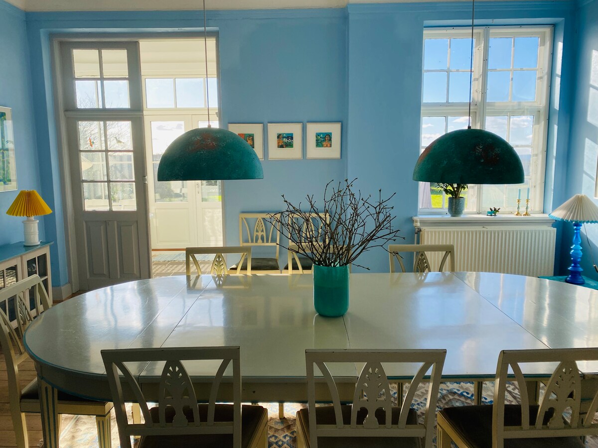 100 sqm newly renovated guesthouse on a biodynamic, self-sufficient farm with unobstructed, beautiful views over the rolling hills of Southern Zealand. Surrounded by a rich array of animals and plants with meadows, forest, and permaculture gardens, life is thriving. Visit the farm shop for fresh fruits, vegetables and unique treasures. A rare, peaceful place for quiet retreats, relaxation and magical nature experiences. Breakfast and dinner available upon request. Contact us for more info.