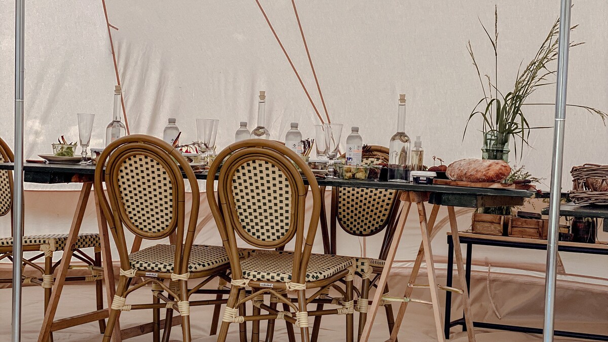Dejligt telt med kig til stjernene gennem ovenlys vindue. God box madras 140 X 200 cm og 2 enkelt senge med skummadrasser. Dyner, sengetøj og håndklæder. Stole, borde og service. Vandkoger og mulighed for at lave kaffe og the. Bad og toilet på gården. Bålsted og mulighed for at lave mad og bål på rist Sauna med koldvandskar og gode olier - 250 kr Morgenmad 120 kr pr person Lille butik på gården hvor der kan købes drikkevarer, is snack, brænde mm Bordtennis