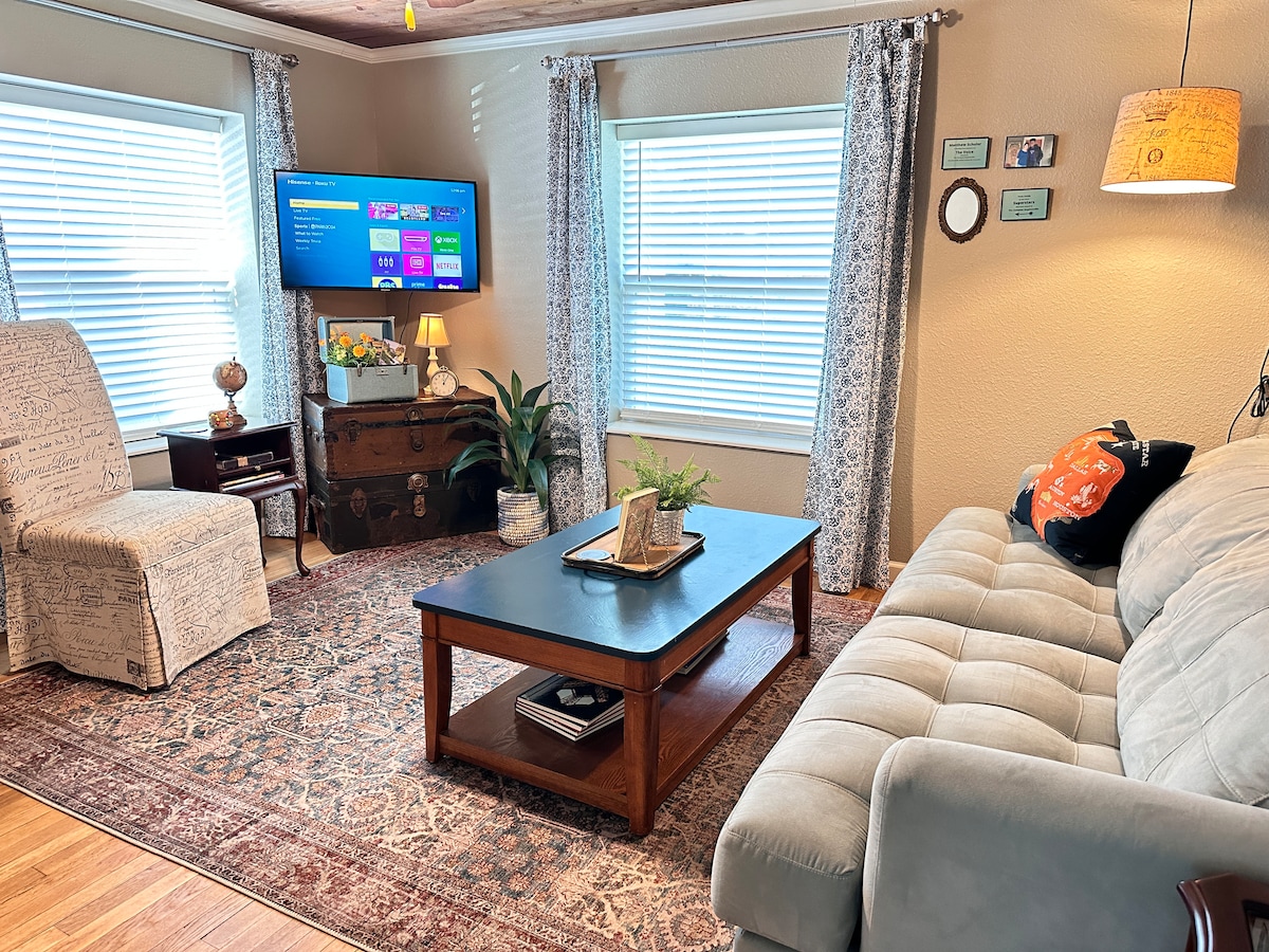 Casa degli anni '40 ristrutturata, ricca di fascino e dotata di comfort moderni. Il "Compass South", che è una delle due unità di The Compass, è decorato con un tema di viaggio utilizzando cimeli e souvenir di viaggio vintage unici provenienti dai nostri viaggi in tutto il mondo. Goditi la spaziosa camera da letto, il grande bagno, il soggiorno con divano letto e un angolo cottura completo di mini-frigo, forno a microonde, macchina per il caffè e alcuni snack, e internet veloce. Scopri anche Compass North, Compass Loft e Compass Entire House