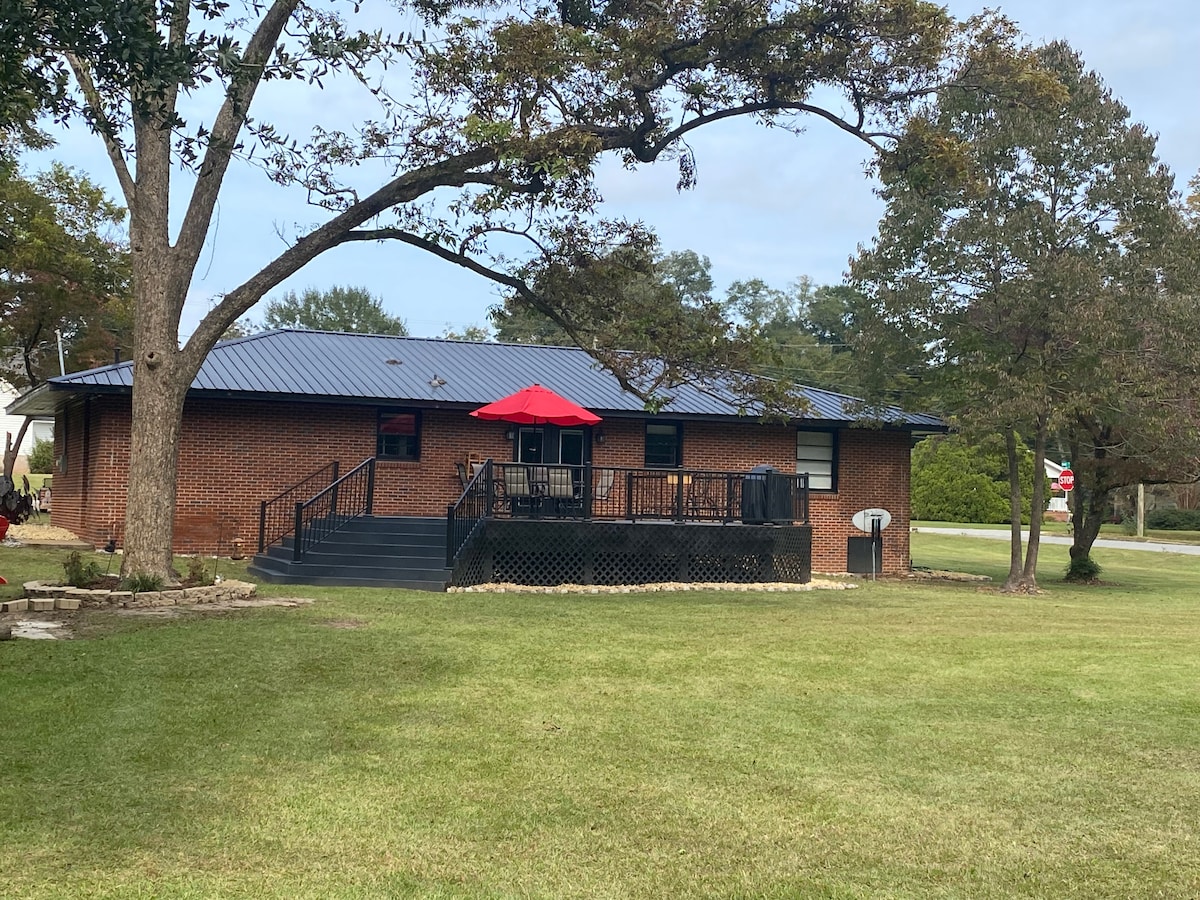 Casa accogliente situata nella storica Lumpkin, in Georgia. - Due camere da letto con letti matrimoniali e ventilatori a soffitto. Due poltrone che si convertono in letti singoli. Posti letto 6. - Cucina rifornita di provviste, lavatrice e asciugatrice complete, barbecue a gas, ampio cortile sul retro, tavolo da picnic e braciere.