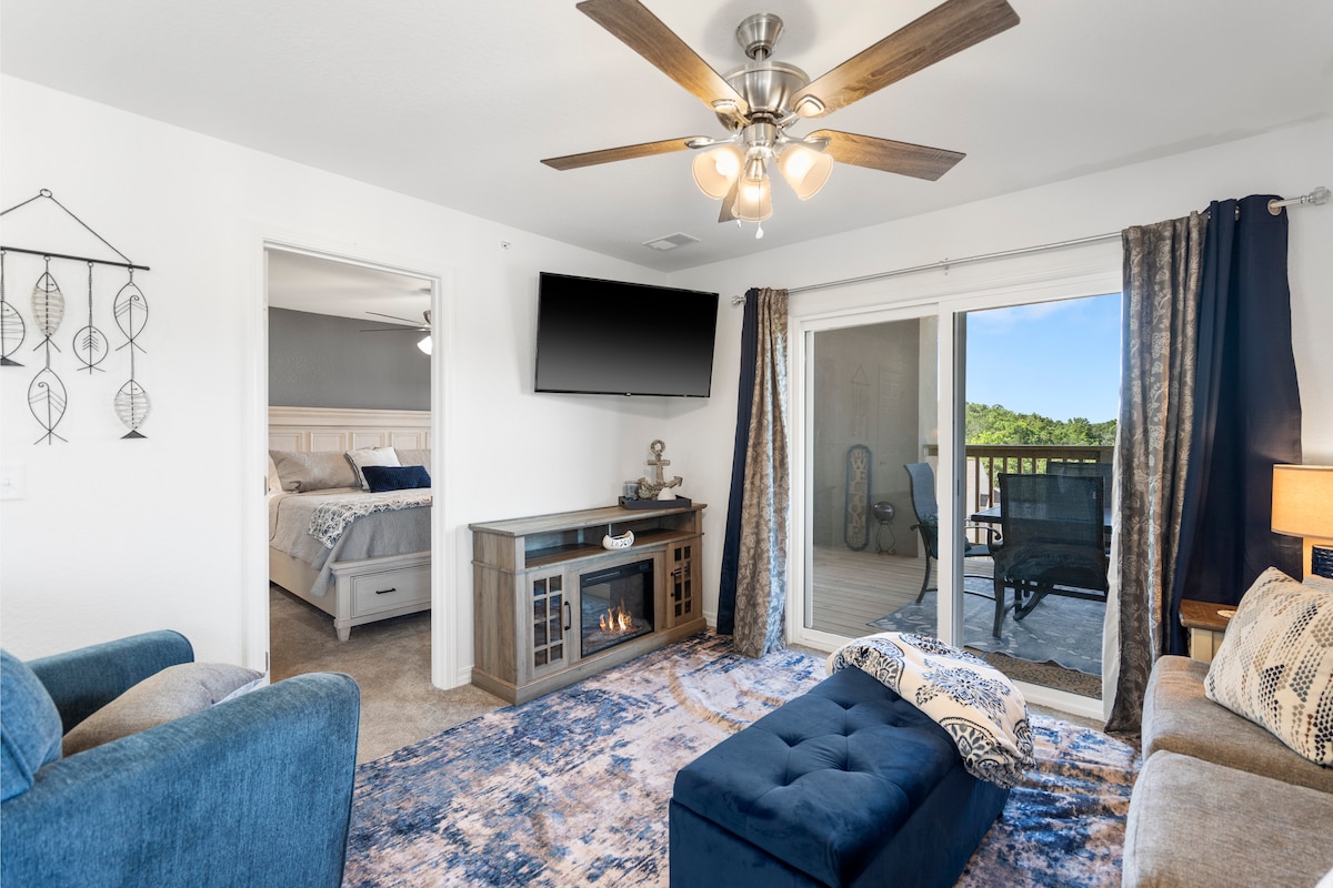 Enjoy lake living with modern style at this newly renovated condo in Kimberling City! Located on the shores of Table Rock Lake with direct water access on property, you're just 20 min from Silver Dollar City, 25 min from the Showboat Branson Belle, and 30 min to the Branson Strip. Relax on the private screened-in patio with stunning views, or unwind in the chic, fully updated interior. Perfect for a relaxing getaway or Branson adventure!