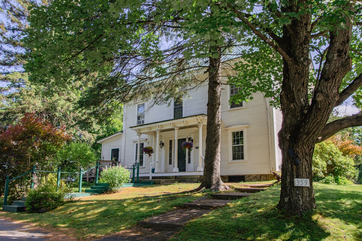 La camera degli ospiti ha un ingresso separato situato al largo di un portico coperto, con un tavolino e sedie per l'uso estivo. C'è aria calda e fredda regolabile dalla pompa di calore a parete. La piccola cucina è comoda per caffè o tè o un pasto leggero (forno tostapane, piastra a induzione singola "calda", scaldabagno) Viviamo in un edificio storico. Il nostro quartiere è molto vicino a Rte 100. Anche il villaggio di Waterbury e Stowe sono vicini e offrono la possibilità di sciare, fare escursioni e andare in bicicletta.
