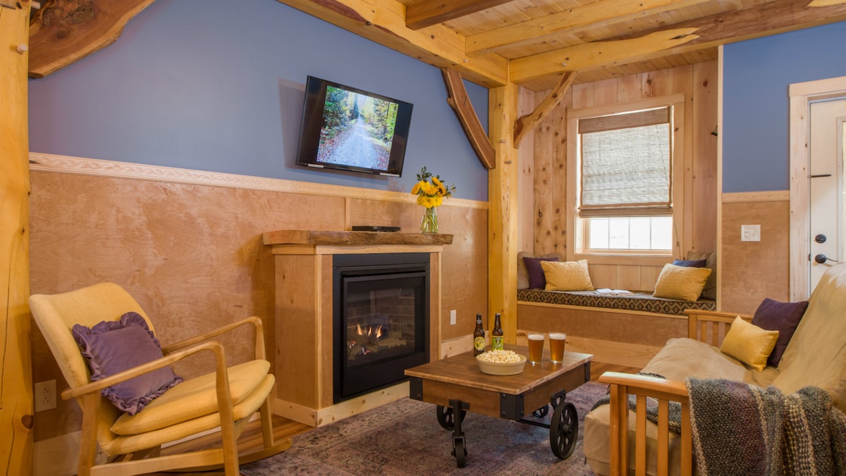 Cabin 7 - Hemlock Hideaway is the ideal spot for a private getaway! Open year round, Robert Frost Mountain Cabins offers 7 fully furnished, artisan-crafted cabins at a picturesque & secluded setting in the Green Mtn National Forest. A true getaway of rustic charm and contemporary comforts! This award-winning, licensed, regulated & Health Dept inspected lodging establishment consistently receives a Sparkling Clean rating on AirBnB and 5 stars for cleanliness on TripAdvisor.