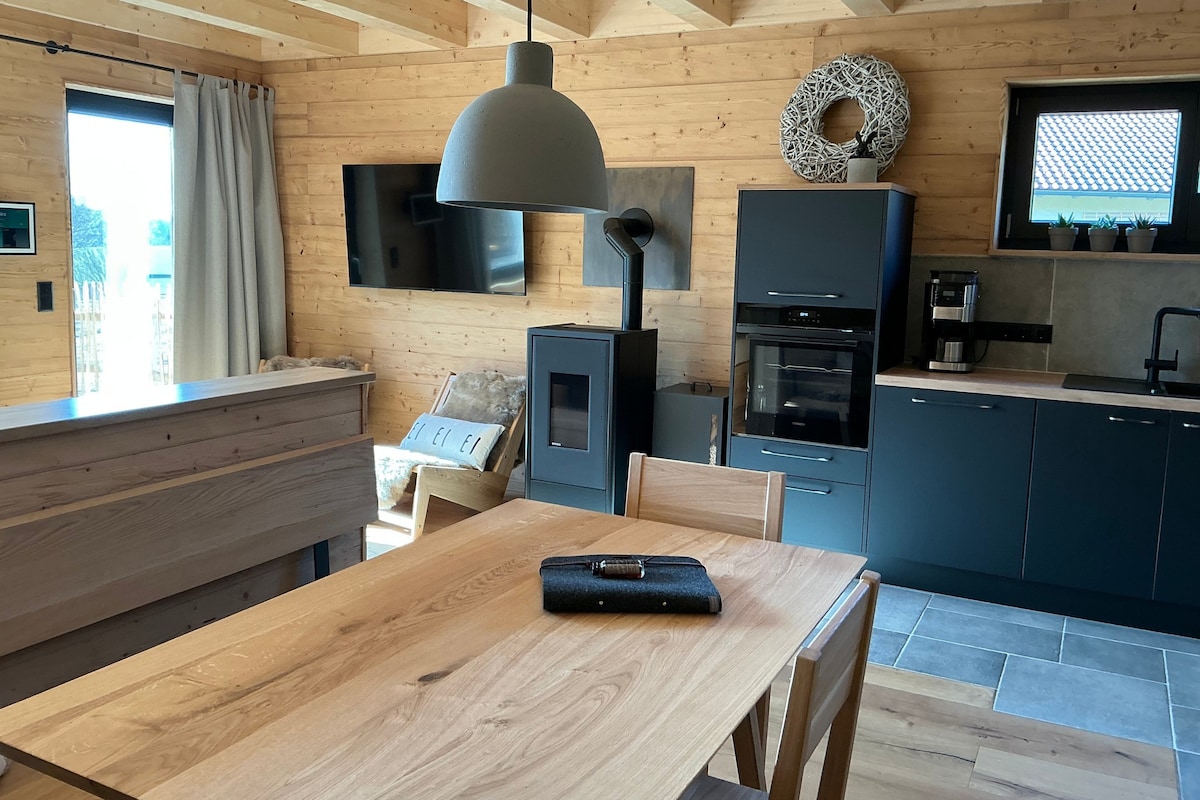 Benvenuti al Bayerwald Chalet Liebenstein, un rifugio che unisce comfort moderno e fascino tradizionale. Su circa 110 m², il chalet ospita comodamente 2-4 persone. Realizzato interamente in legno da una falegnameria locale, offre travi a vista, tetto aperto, mobili artigianali in rovere, rivestimenti in legno antico e piastrelle in pietra naturale per un’atmosfera calda e accogliente. L’ampia zona giorno open space con cucina, sala da pranzo e area relax è luminosa e spaziosa.