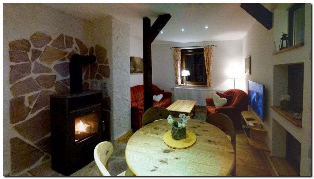 Appartamento con soggiorno/camera da letto. 1 letto matrimoniale (1,80x2,00m) e 1 letto singolo (0,90x2,00m) anche 1 lettino per bambini è disponibile. Cucina abitabile separata completamente attrezzata e bagno con doccia. In estate, posto a sedere e sdraio in giardino. In inverno, la pista è davanti alla porta Sauna privata in estate con doccia esterna in affitto (incl. asciugamani, accappatoio e getto di vapore dalle 10:00 alle 18:00) In estate è possibile noleggiare biciclette su prenotazione. Saremo lieti di fornirvi slitte per bambini.
