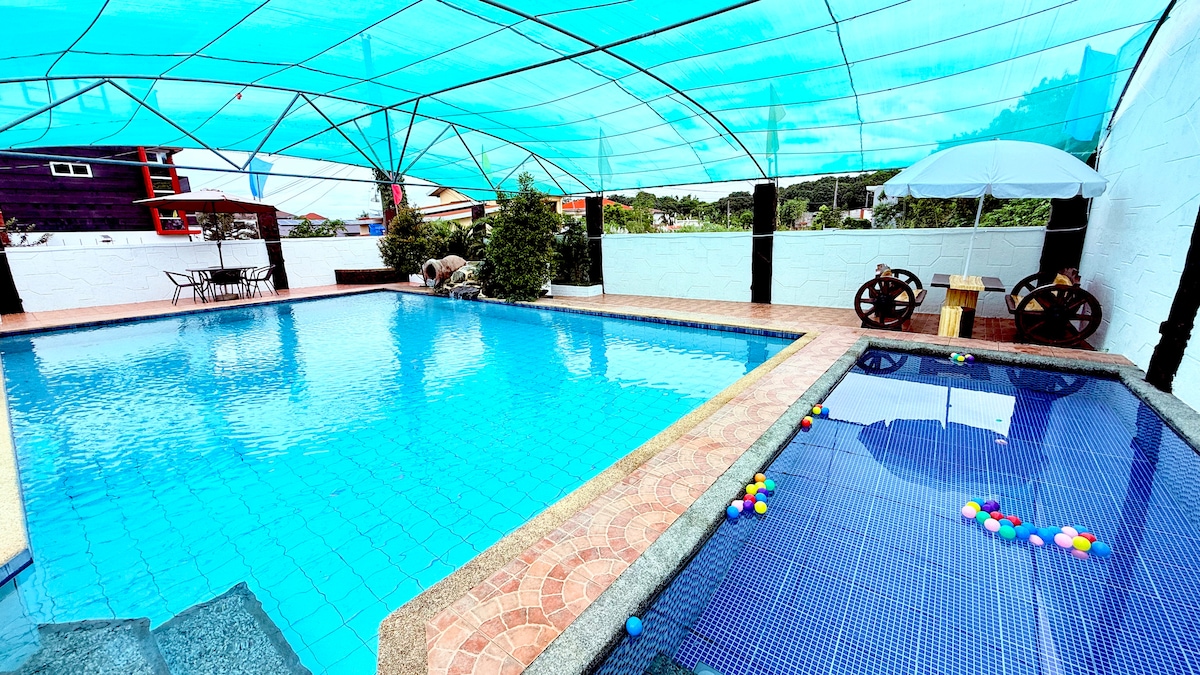 Una graziosa pensione per la tua famiglia a pochi passi dalla spiaggia! L'alloggio si trova all'interno di un resort a conduzione familiare e dispone di un proprio posto auto, quindi non dovrai preoccuparti di dove parcheggiare la tua auto. Il posto dispone di un proprio angolo cottura (con frigorifero e forno a microonde), servizi igienici e bagno, soggiorno e camera da letto climatizzata. All'interno del resort è possibile utilizzare gratuitamente un tavolo da pranzo e sedie per 10 persone. Barbecue, 5 kayak, 4 capanne Nipa e karaoke sono disponibili per l'affitto. A presto!