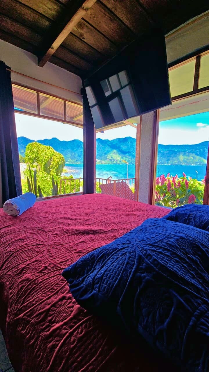 VISTA SUL LAGO! IG: @Lakeviewontherocks "Lakeview on the Rocks è una spaziosa casa sul lungomare a San Antonio Palopó con incredibili viste sui vulcani Atitlán e Tolimán. Perfetta per famiglie e gruppi, la casa offre accesso diretto al lago, kayak, una terrazza privata e un sacco di spazio interno/esterno per rilassarsi. A soli 20 minuti da Panajachel, è il luogo ideale per un soggiorno tranquillo e confortevole." Vista sul vulcano! 1 telecamera esterna verso terrazza/giardino/lago.