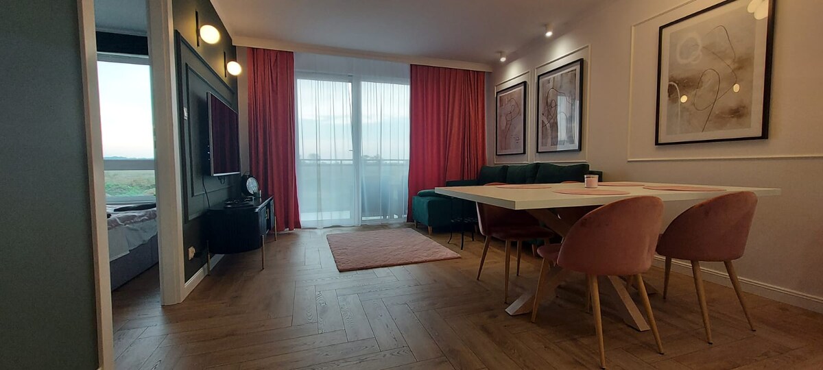 Lussuoso appartamento panoramico situato a pochi minuti dalla spiaggia sul Golfo di Puck e dal molo di Mechelinki. È il luogo ideale per chi cerca relax circondato da una natura meravigliosa e allo stesso tempo vicino alle attrazioni offerte dall'agglomerato della Tripla Città. Mechelinki offre uno dei paesaggi più spettacolari della costa polacca. A pochi passi si raggiungono le scogliere che la dividono da Gdynia, il porto turistico o Rewa, la mecca degli sport acquatici.