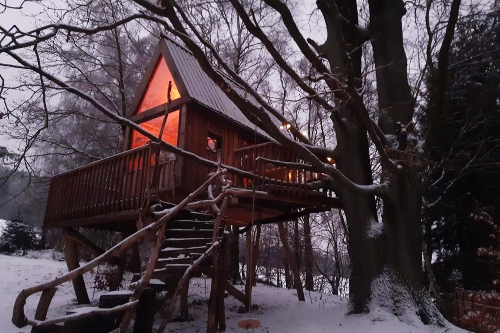 Goditi l'accogliente casa sull'albero con sauna, vista sulle montagne e giardini