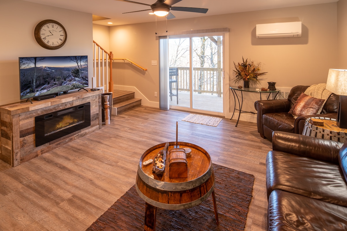 Appartamento completamente ristrutturato con arredi eleganti in una posizione perfetta ai piedi della Sugar Mountain! Completamente ristrutturato, questo appartamento si distingue dagli altri! Si tratta essenzialmente di un nuovissimo appartamento. Guarda le nostre foto!! Non rimarrai deluso. Enormi spazi esterni al piano principale e al piano superiore, con splendida vista sulle montagne e privacy grazie al bosco circostante. Vicino alle piste da sci in inverno. Estremamente comodo per raggiungere Grandfather Mountain, fare escursioni a piedi e in bicicletta, visitare le cantine, andare sull'Alpine Coaster e molto altro ancora!!