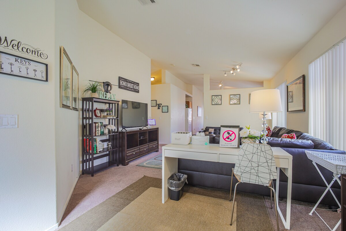RINNOVATO A GIUGNO 2025 ✨ Per favore leggi l'intero annuncio, inclusi i dettagli, per assicurarti le giuste aspettative in modo da avere il miglior soggiorno possibile ✨ ☀️A 5 minuti da Red Rock! A 20 da Strip! A 10 minuti dal centro! Ingresso ☀️privato e patio privato recintato. Parcheggio ☀️designato per 1 auto. ☀️Wifi veloce e affidabile ☀️A pochi passi da Target e da una serie di negozi e ristoranti per la tua comodità. ☀️La camera da letto principale ha un materasso queen size, il divano nel soggiorno principale è un divano letto queen size.
