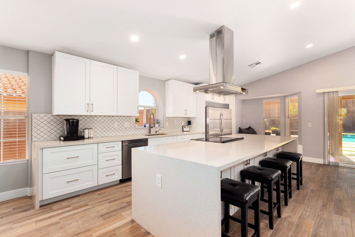 Immergiti in questo splendido rifugio di lusso! Rilassati a bordo della piscina privata in questa oasi nel cortile. Goditi la comodità di una posizione privilegiata vicino alle principali attrazioni e aree di intrattenimento di Chandler/Gilbert. A pochi minuti dal centro di Chandler e dalle principali autostrade per raggiungere facilmente qualsiasi punto della valle di Phoenix. Ideale per famiglie o amici, nonché per professionisti del viaggio, questo rifugio può ospitare comodamente fino a 8 persone per un mix perfetto di relax ed esplorazione.