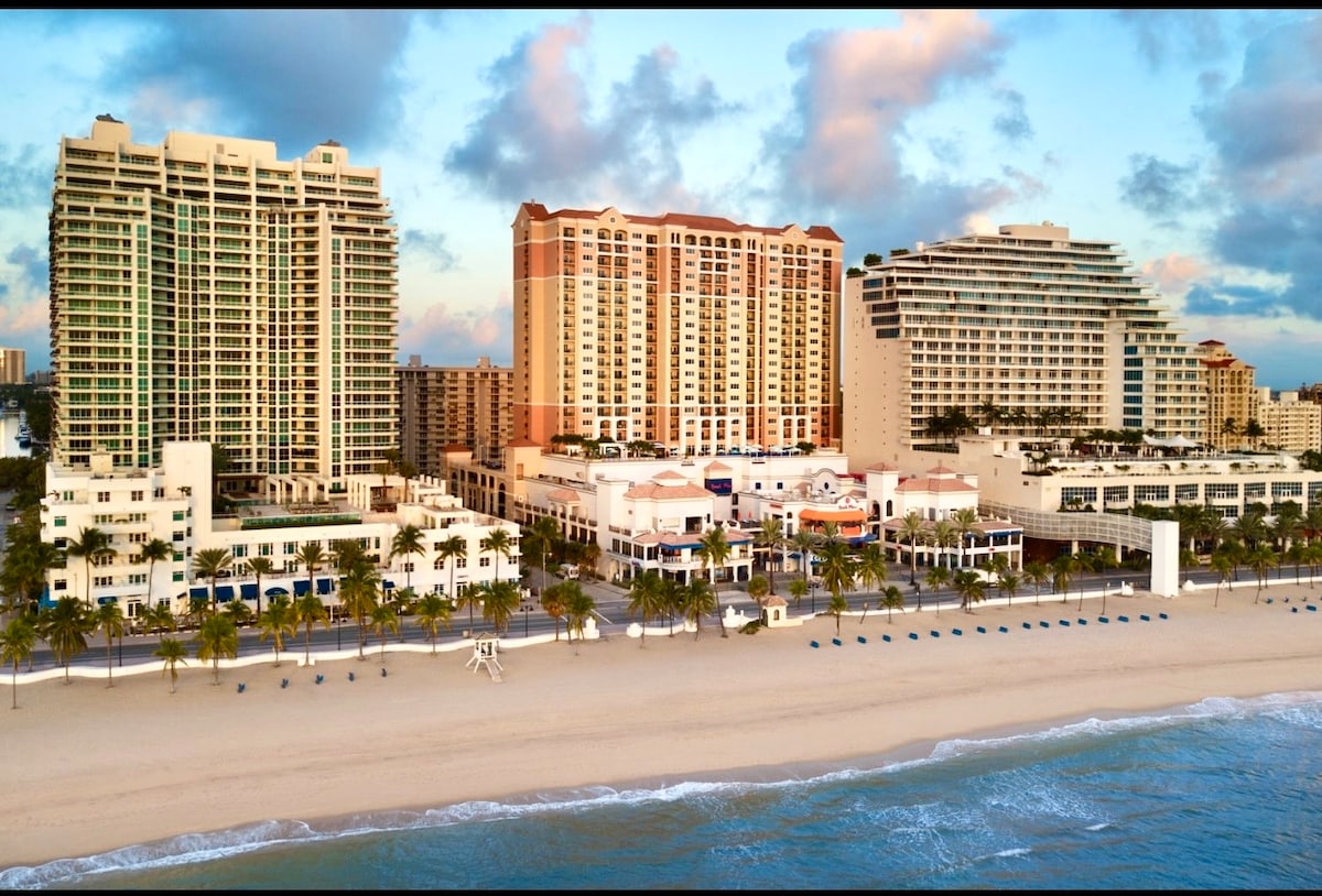 Experience oceanfront luxury at Marriott's BeachPlace Towers, ideally located on Fort Lauderdale's famous beach. This premier resort offers stunning Atlantic views and direct beach access. Steps from Beach Place's vibrant shopping, dining, and entertainment. Features rooftop pool, fitness center, and water activities. Perfect base for exploring Venice of America's canals, Las Olas Boulevard, and legendary beaches.