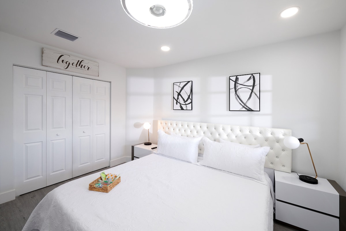 Monolocale rilassante, privato, tranquillo e in posizione centrale. Non condividi il tuo spazio con nessuno. A pochi passi da ristoranti, supermercati, fermate degli autobus, palestra e Florida International University. Comodamente vicino all'aeroporto di Miami, all'ospedale regionale Kendall, al centro commerciale Dolphin Mall, a TopGolf, alle spedizioni in idroscivolante delle Everglades, a City Place Doral con Fresh Market, negozi, cinema, Comedy Club, musica dal vivo e altro ancora. A 18 km da Bayside e Wynwood Walls. La spiaggia? A soli 24 km in auto!