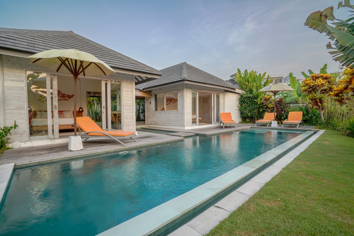 Villa Asri Canggu, 1 camera da letto, bar a bordo piscina, a 10 minuti dalla spiaggia