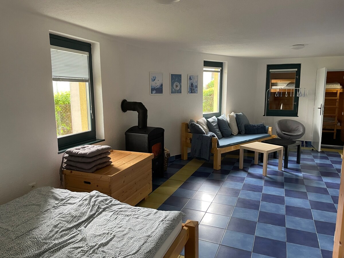 Un ottimo rifugio per un gruppo di amici, ma anche per una famiglia con bambini e animali domestici. L'intera casa è solo per te, puoi anche utilizzare l'area recintata del giardino. Puoi montare una tenda in giardino o trascorrere del tempo sulla grande terrazza accanto alla griglia con vista sul verde. Puoi rilassarti nel soggiorno con la TV con Netflix. Il soggiorno può anche ravvivare la visione di vecchi DVD, o l'uso di giochi da tavolo. La posizione è tranquilla e sicura, vicino alla foresta e al fiume Lužnice. Il quartiere è ricco di bellezze naturali e attrazioni storiche.