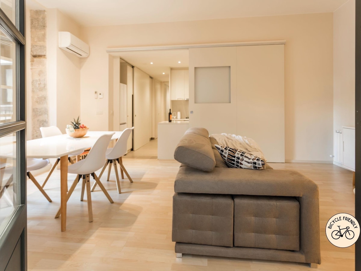 ALBADA BLAU: scopri il cuore del centro storico! Il tuo appartamento al piano terra dispone di un incantevole patio per godersi un drink all'aperto vicino alla fontana. Posizione imbattibile vicino al fiume e ai monumenti. Due bagni completi per il tuo comfort. La zona notte ti aspetta con un letto XXL (180x200) e un camino elettrico. Nel soggiorno c'è un comodo divano letto (160x190). Ideale per i ciclisti: spazio per 4 biciclette. Il tuo rifugio perfetto per esplorare Girona in tutta comodità e privacy!