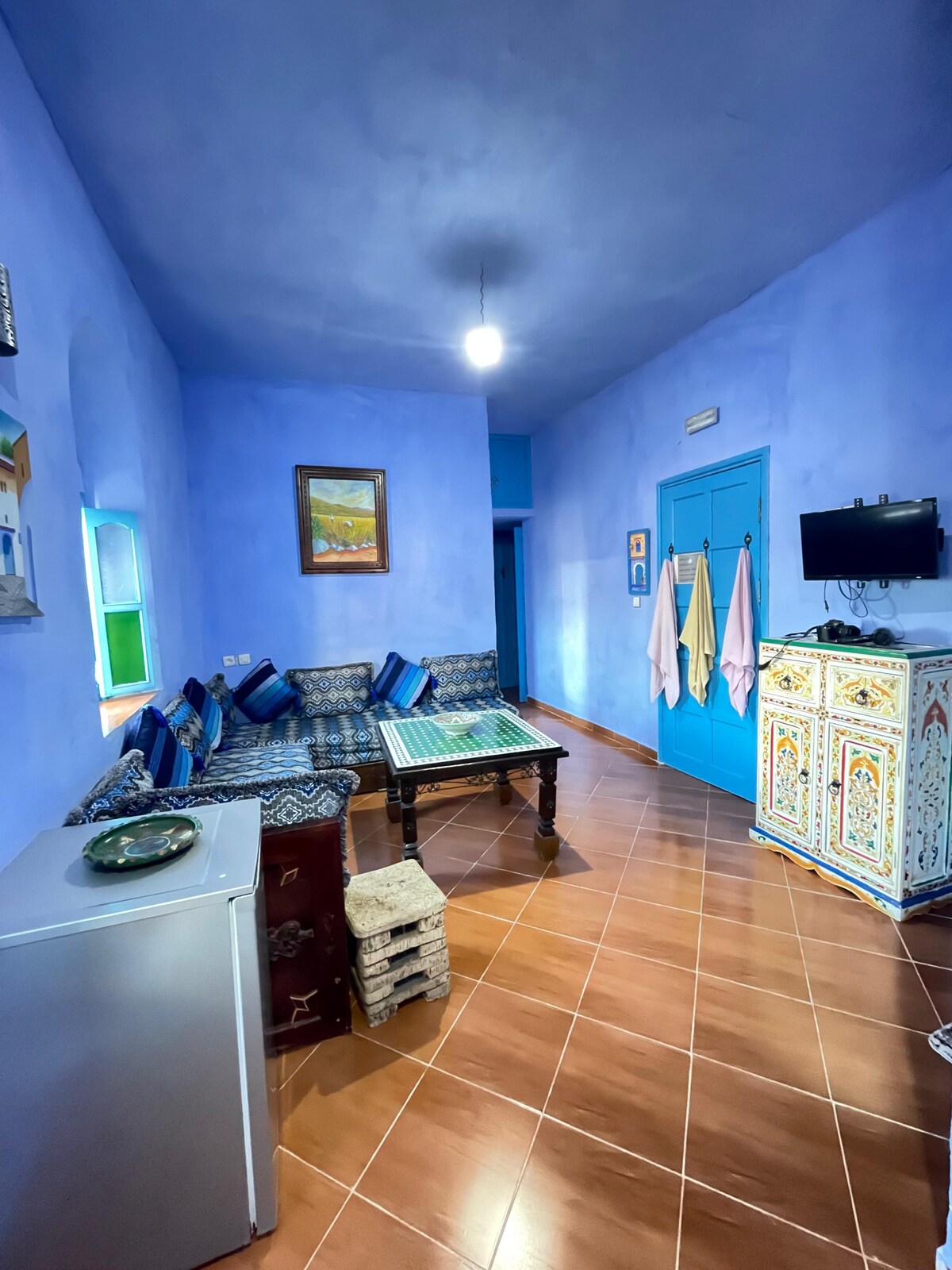Scopri il nostro accogliente appartamento nel cuore di Chefchaouen, nota per le sue splendide strade blu. Goditi un mix di arredi tradizionali marocchini e comfort moderni, tra cui una confortevole zona giorno, una cucina completamente attrezzata e un balcone privato con vista mozzafiato sulle montagne. A pochi passi dalla vivace medina, potrai esplorare i mercati locali, i caffè e i punti di riferimento culturali. Scopri il calore della comunità locale e crea ricordi indimenticabili in questa magica città!