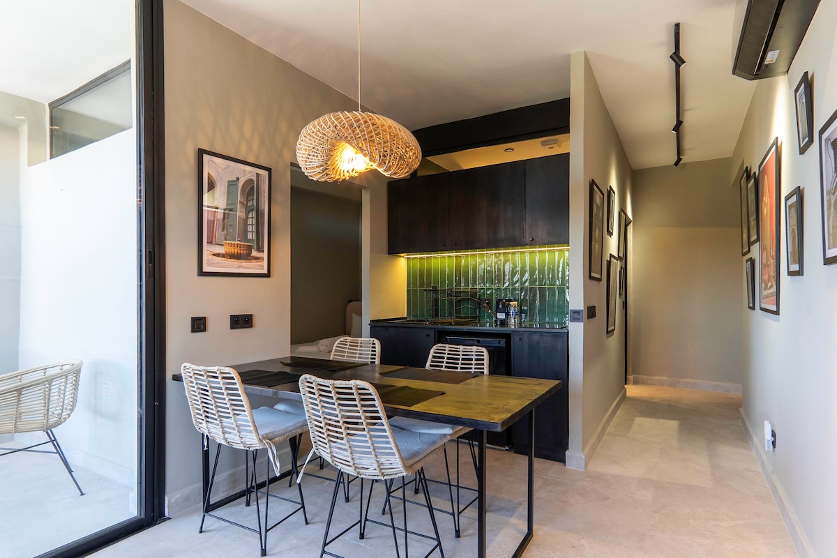 Soggiornate nel cuore di Marrakech nel nostro appartamento con 2 camere da letto e 2 bagni. Godetevi una biancheria da letto Simmons di alta qualità, WiFi ad alta velocità (fibra ottica) e un arredamento moderno con una piscina privata. Cucina completamente attrezzata, vasca elegante e cabina doccia. A pochi passi da piazza Jemaa el-Fna, dalla Plazza e da Carré Eden. La piscina non è riscaldata. NB: Non sono ammesse coppie marocchine non sposate.