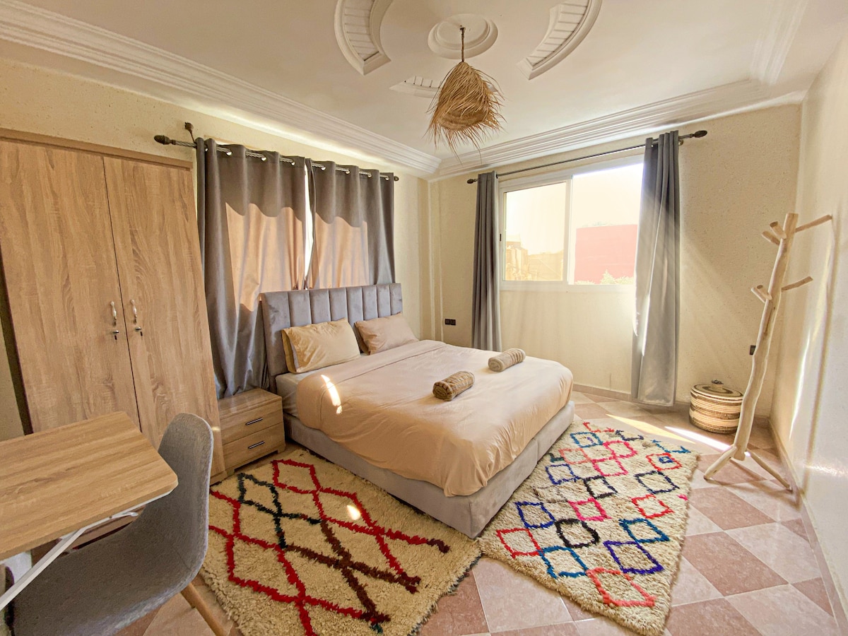 Questo grazioso appartamento offre il perfetto mix di tranquillità, un'imbattibile vista sull'oceano e un'atmosfera rilassata. Che tu sia qui per fare surf o per rilassarti, troverai il posto perfetto. Goditi tramonti mozzafiato, un'atmosfera amichevole e un facile accesso alla spiaggia. Offriamo escursioni organizzate per praticare surf, surfskate, quad, equitazione e avventure tra le dune di sabbia con sandsurf, gite in cammello e cene sotto le stelle. Perfetto per chi viaggia in solitaria o in gruppo e vuole scoprire la costa del Marocco!