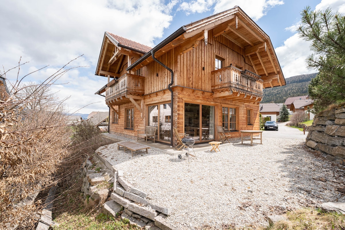 Il nostro chalet di lusso, situato in una posizione tranquilla, si trova ai margini del bosco in un piccolo parco vacanze, vicino al villaggio di Stadl an der Mur. Lo chalet è splendidamente posizionato su un pendio di montagna, da cui si gode di una splendida vista sulle montagne e sulla valle, con il villaggio di Stadl in lontananza. La superficie abitabile dello chalet è di 115 m2, con una terrazza spaziosa e soleggiata tutt'intorno. Nelle immediate vicinanze si trovano le belle e accoglienti stazioni sciistiche di Kreischberg, Katschberg e Turracher Höhe.