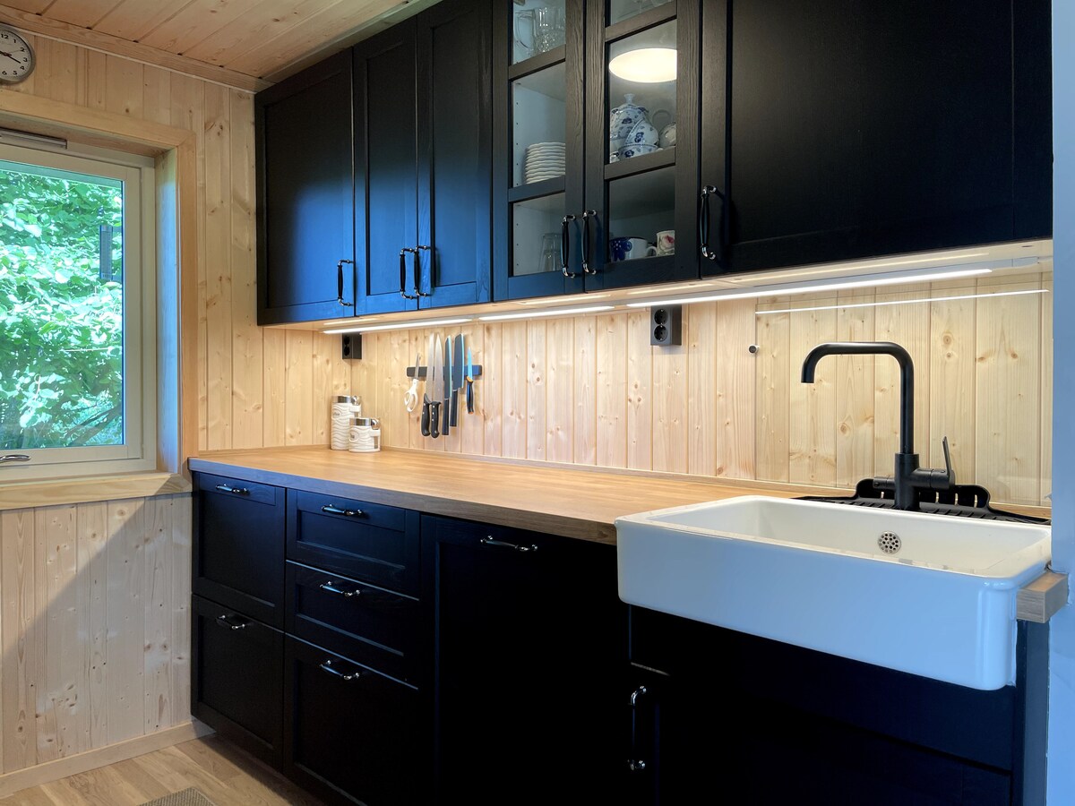 La tua fuga romantica perfetta al FURU Norway Uno chalet riparato esposto a sud-ovest, circondato da alberi sempreverdi, che crea un ambiente intimo. Interni in una combinazione di colori scuri, riposanti come lunghe notti invernali. Goditi la tua vasca idromassaggio privata nella foresta per 500 NOK a soggiorno, prenota in anticipo. Finestre a tutta altezza con tende oscuranti, riscaldamento a pavimento. Letto matrimoniale grande, cucina con piano cottura a 2 piastre, stoviglie di alta qualità, comoda zona salotto. Bagno con doccia a pioggia, lavandino e WC.