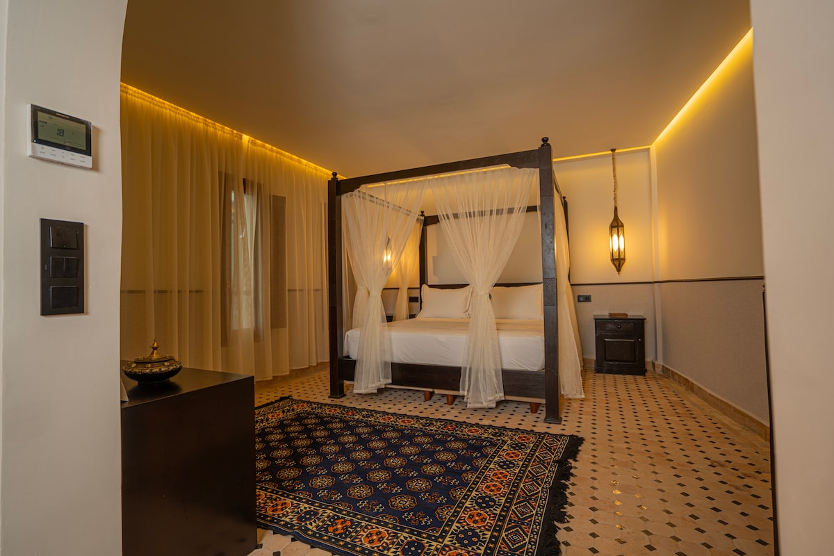 Immergiti nell'universo raffinato della nostra Junior Suite, dove il fascino senza tempo dell'artigianato locale incontra il prestigioso comfort di oggi. Pensata per offrire un'esperienza autentica, questa suite vi avvolge in un'atmosfera accogliente. Spaziosa e inondata di luce, la suite dispone di un elegante salotto e di un letto king size dal comfort assoluto. Ogni dettaglio è stato accuratamente selezionato per riflettere l'anima del Marocco e soddisfare le esigenze dei nostri ospiti.
