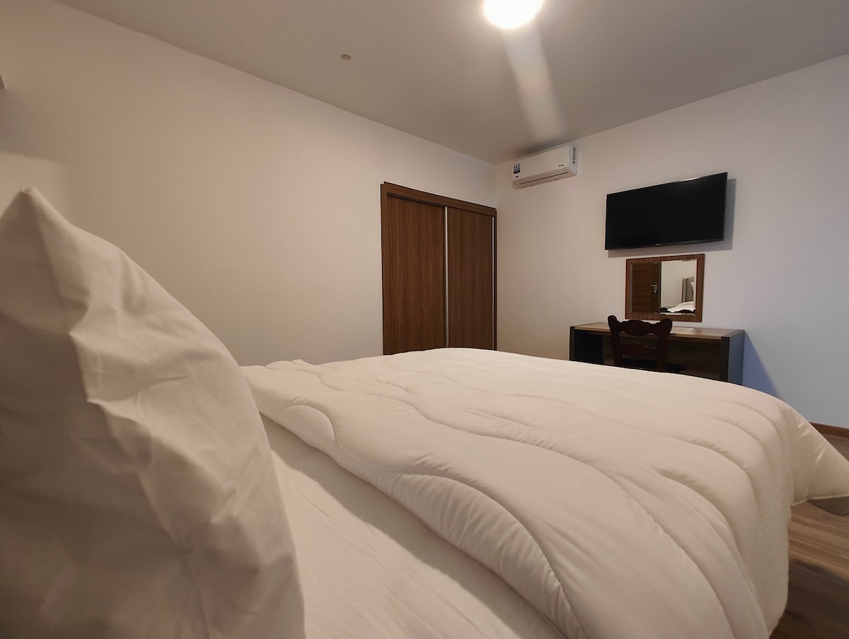 La spacieuse chambre double dispose de la climatisation et d’une armoire, ainsi que d’une salle de bains privative avec douche et sèche-cheveux. Elle comprend également un coffre-fort, un sèche-linge, un dressing, une moquette au sol et une télévision à écran plat. L’hébergement comprend un lit.